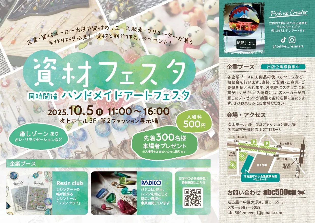 ●2025年10月5日(日) ●名古屋市中小企業振興会館(吹上ホール上第2ファッション展示場) ●11:00~16:00 ● 最大300ブース ●入場料:500円