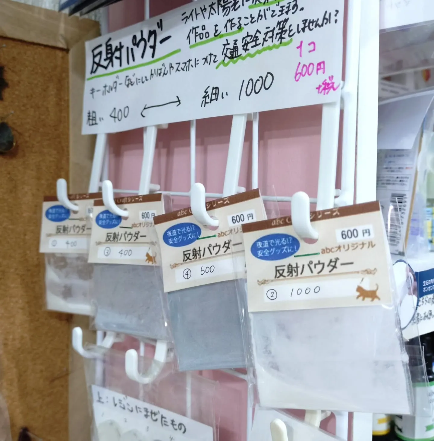 交通安全アクセサリー作りに反射パウダーを使いませんか?表面や... 交通安全アクセサリー作りに反射パウダーを使いませんか?表面や背面に使うと反射がよりわかりやすいと思います!2枚目が反射したものになります!400のものが1番反射します♪https://abc500en.handcrafte…