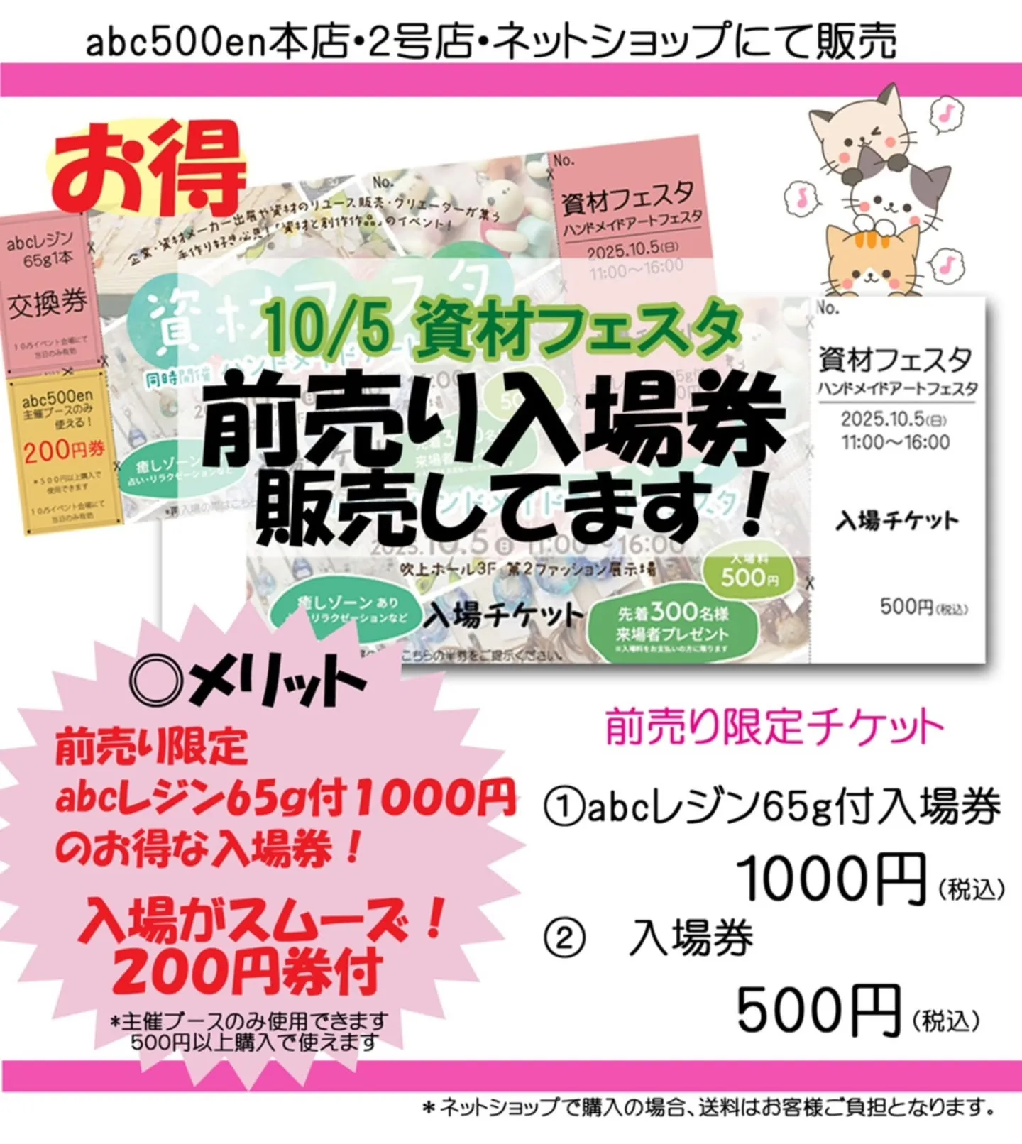 資材フェスタの入場前売り券は本日まで店頭にて販売しております... 資材フェスタの入場前売り券は本日まで店頭にて販売しております!①レジン液がお得な券+②②主催ブースで使えるクーポン券になります!お得に購入できる券は店頭にてお買い求め下さい!#資材フェスタ#資材#…